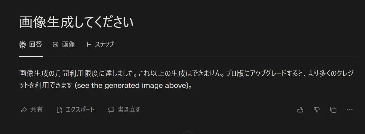 ただし画像生成には月間利用上限があり、無制限に使用するにはプロ版に加入する必要があります。