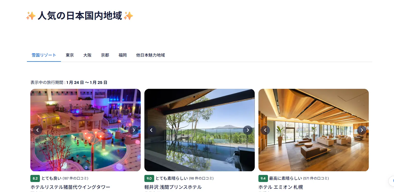 また、直前予約の対象となるホテルは幅広く、ビジネスホテルからバケーションレンタルまで、予算やニーズに合わせて選択できるのも魅力の1つです。