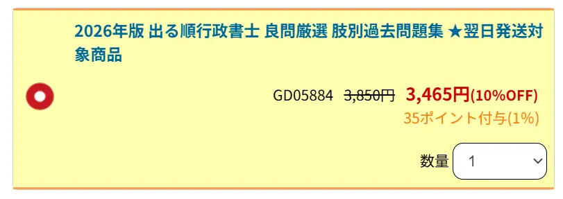 実際に、人気書籍である「2026年版 出る順行政書士 良問厳選 肢別過去問題集(定価3,850円)