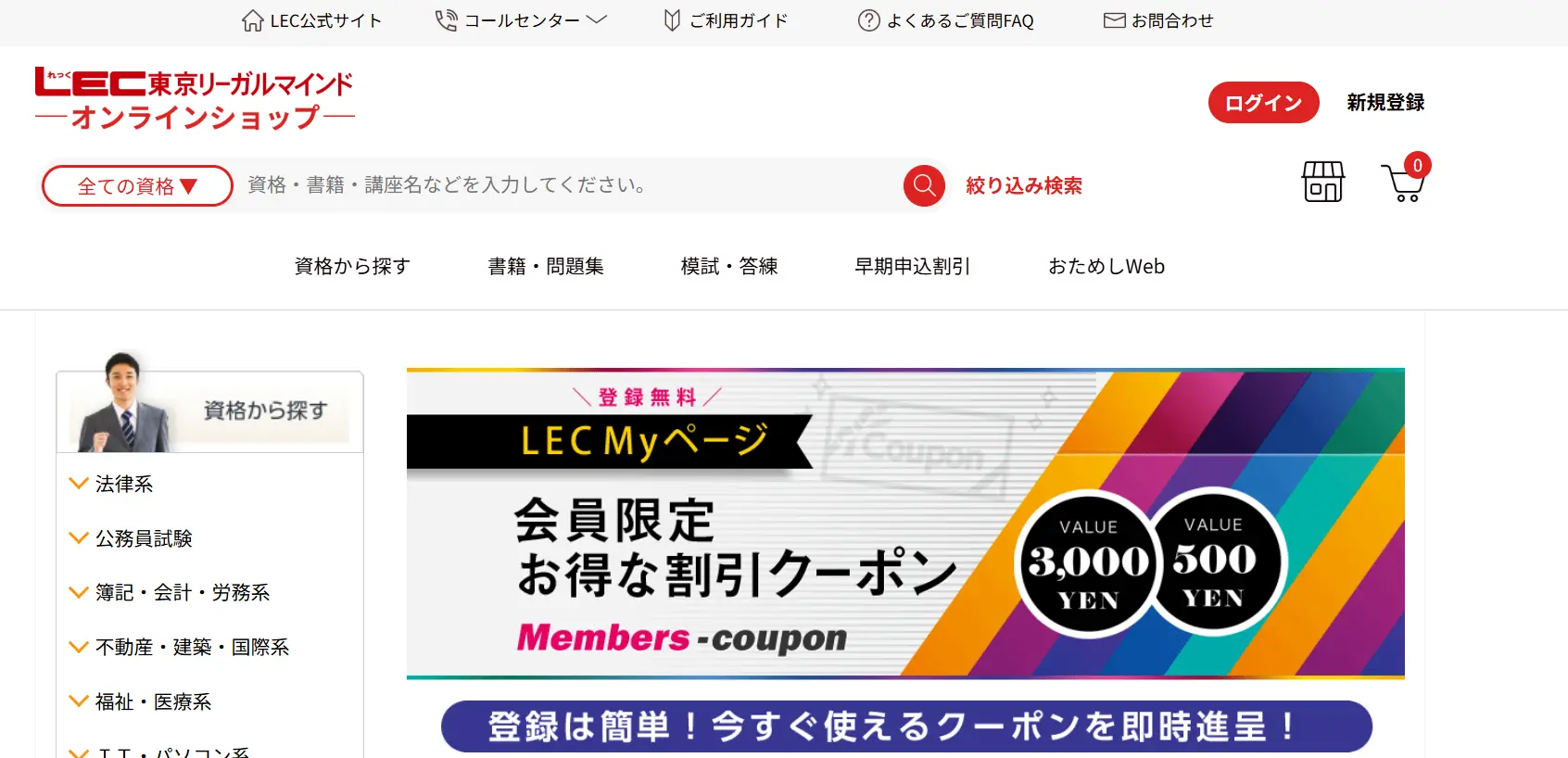 」は、資格受験界の老舗であり最大手の一つである「LEC東京リーガルマインド」が運営する公式オンラインショップです。
